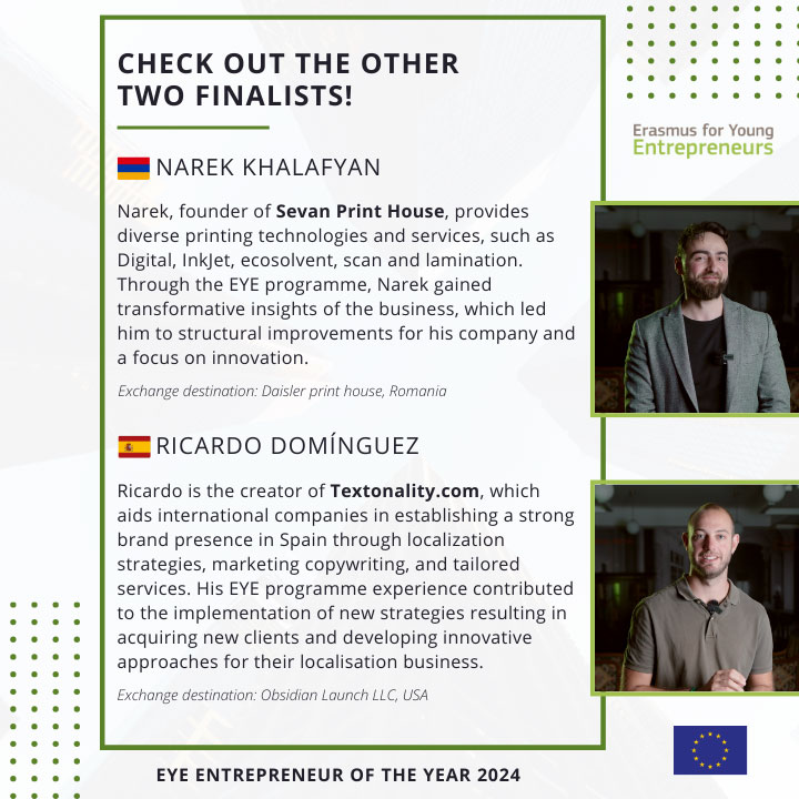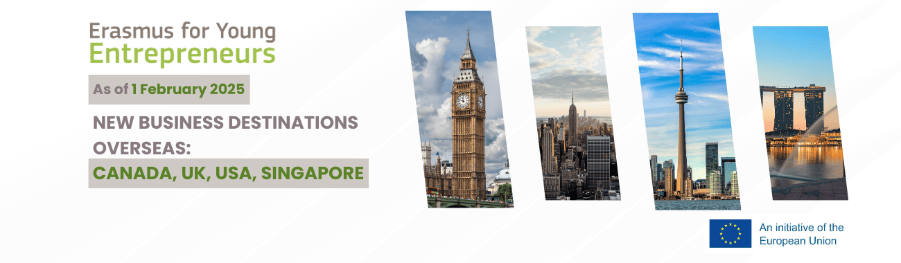 "Erasmus jaunajiem uzņēmējiem” ir pārrobežu apmaiņas programma, kas dod iespēju jaunajiem uzņēmējiem un tiem, kas gatavojas uzsākt uzņēmējdarbību, mācīties no pieredzējušiem uzņēmējiem, kuri vada mazos uzņēmumus visās valstīs, kas piedalās programmā.