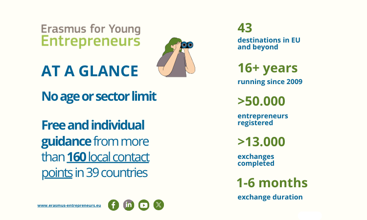 Are you ready to take your business to the next level? The Erasmus for Young Entrepreneurs (EYE) programme has been transforming entrepreneurial journeys for over 16 years, connecting more than 50,000 aspiring and experienced entrepreneurs across...